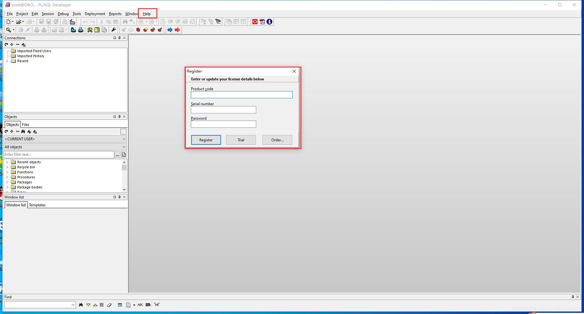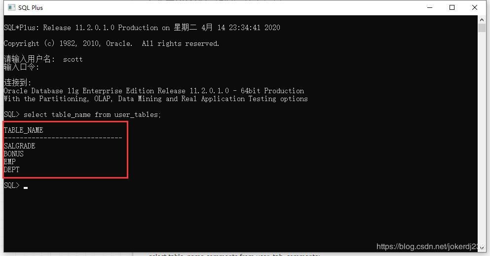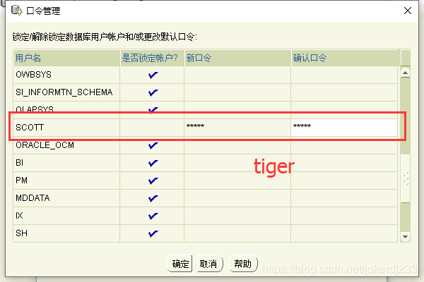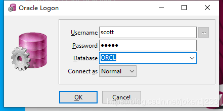- 输入用户名scott 密码:tiger 选中orcl数据库
