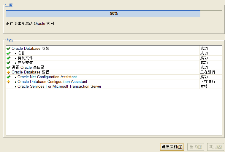 安装产品这一步会花费很多时间,可能要几个小时,下面是我安装过程中截的一张图: