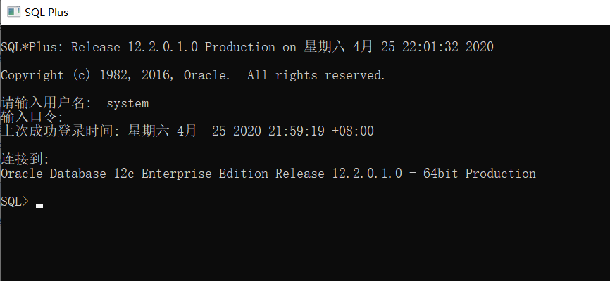 下图是我自己使用 sqlplus 命令进行连接时的截图: