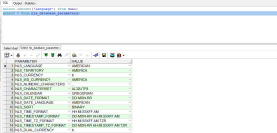 也可以在nls_database_parameters中查询,如下字符集为american_america.al32utf8
