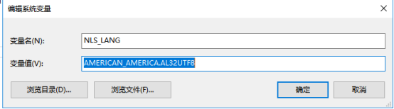 环境变量之中字符集变量设置,变量名nls_lang 值设置与服务器端字符集编码一致