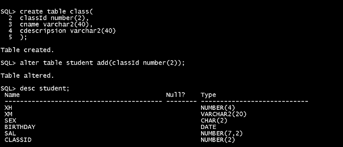 insert into student values('a001','黎明','男','01-05月-2018','3.03',12); 注意日期格式,默认日月年