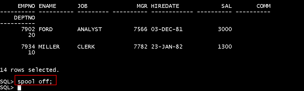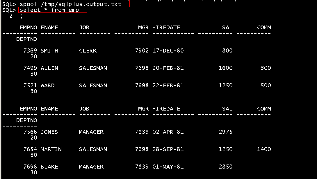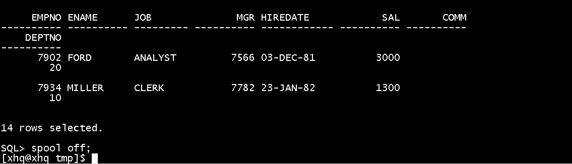 2、spool : 将屏幕上的内容输出到制定的文件中去,注意,该命令只有spool off了才可以在文件中看到内容
