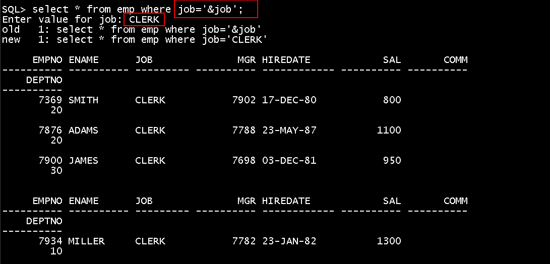 1、& :可以替代变量,该变量在执行时候需要用户输入参数