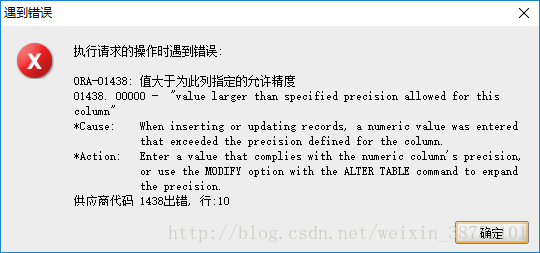 ORA-01438:值大于为此列指定的允许精度问题如何解决?