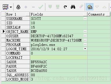 eg:现在我通过scott用户执行dml语句(eg:select * from emp for update;或者update scott.emp set sal = '2000' where empno='7788'; )之后一直不进行提交,然后通过system用户执行上面的查询oracle中被锁表的sql语句,就会找到如下记录: