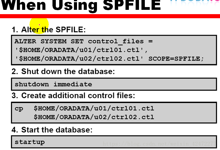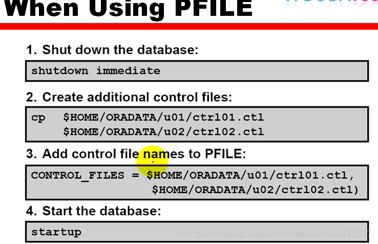 2. 如果你使用的是pfile文件,那么备份控制文件时需要手工向pfile文件中添加控制文件名: