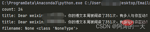 print("title:", title)其中,msg变量保存的就是邮件的主体,接下来因为会重复用到msg和tilte,我们将构造一个类函数返回msg和title。