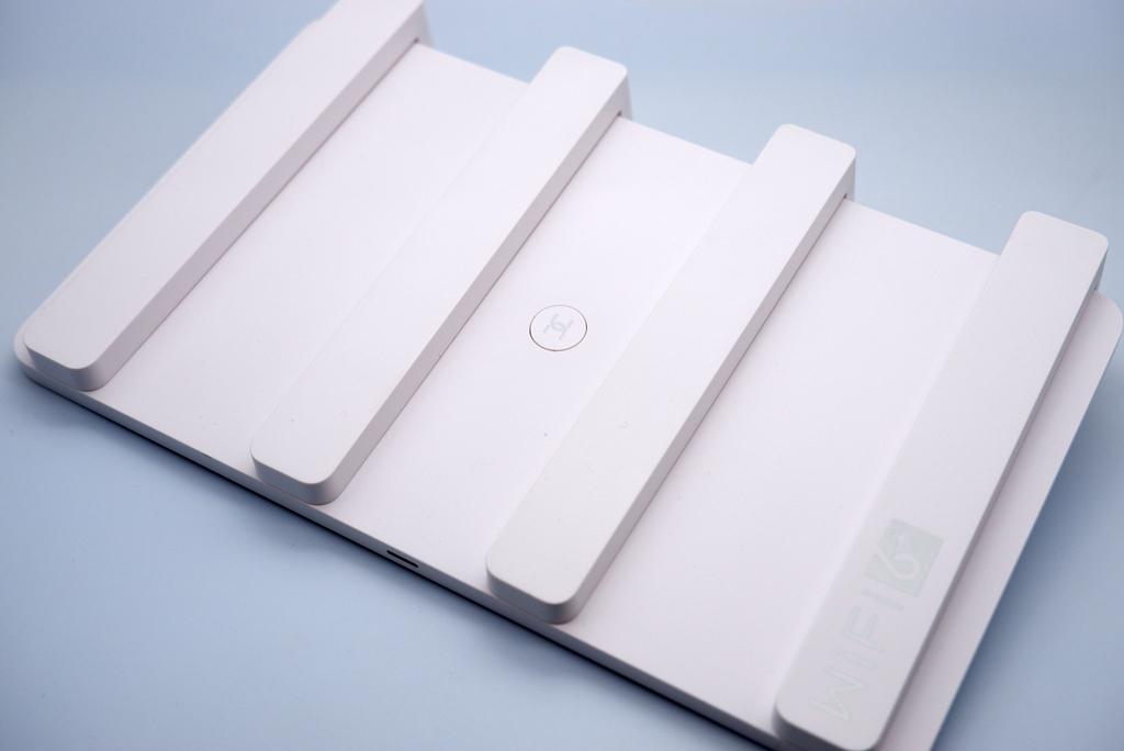 与荣耀前几代路由器相比其实外观上能看出明显变化,首先天线方面由内置天线改为了4根外置天线,注意天线外置内置不影响信号强度,所以本质上没有什么影响,天线增益为5dbi,属于标准天线增益,最右侧天线有十分明显的wifi6+Logo标识,将产品特色突出的淋漓尽致。机身背部的4个千兆网口均为盲插设计,端口支持自适应,不区分WAN/LAN。路由器底部除去产品配置信息外密布了数十个散热孔,为路由器提供了良好的散热基础,路由器正面依然是荣耀路由器系列的经典传承,H按键支持用户一键接入支持HiLink的智能设备,为荣耀的智慧生态提供了友好支持。