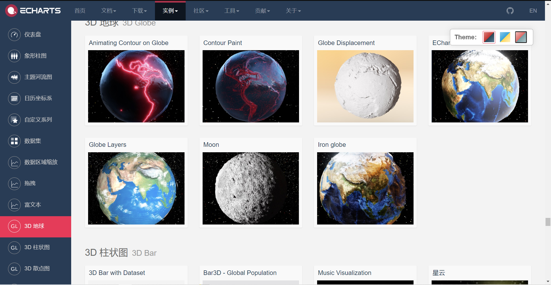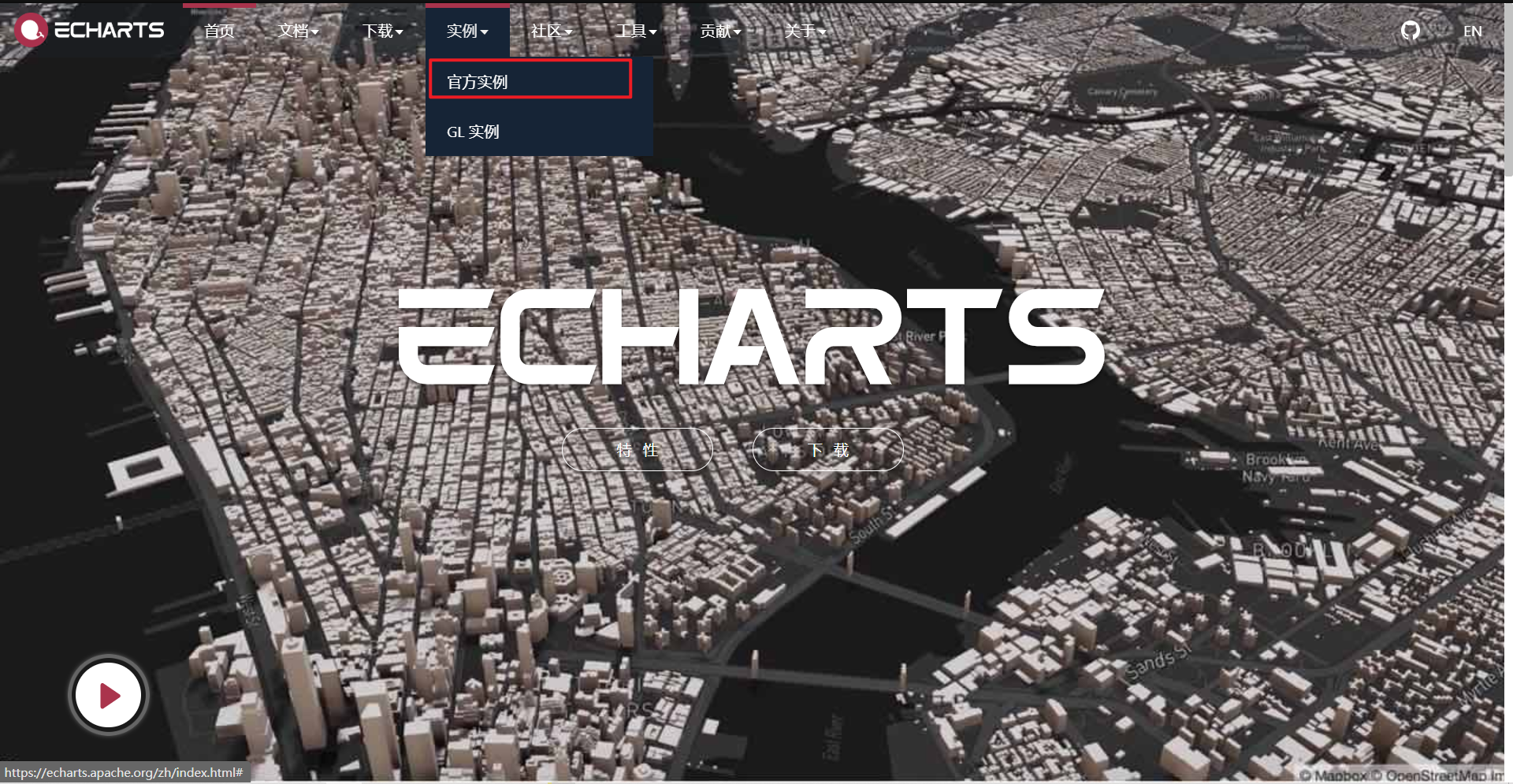 - 实例参考:官网->实例->官方实例 : https://echarts.apache.org/examples/zh/index.html