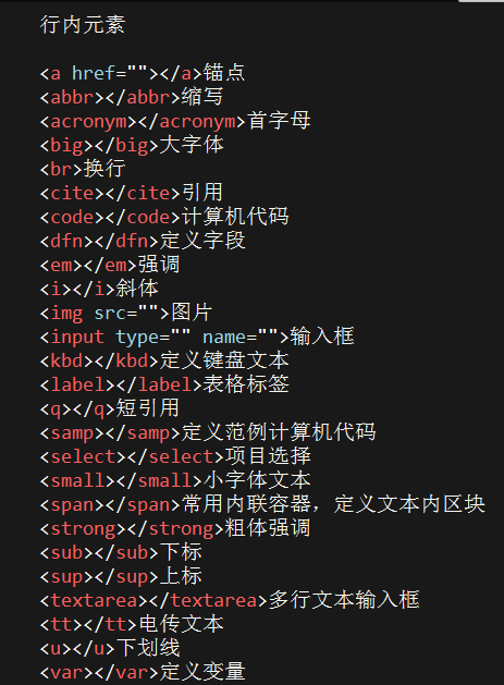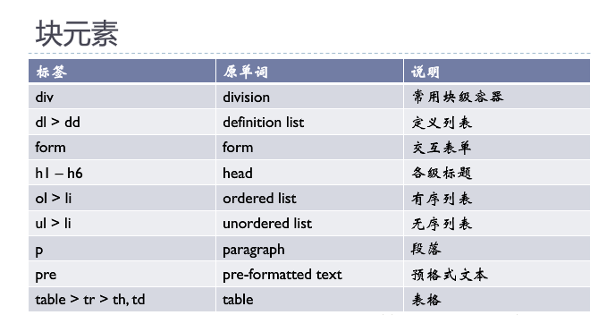 | HTML标签或属性 | 英文全称 | 中文释义 |
