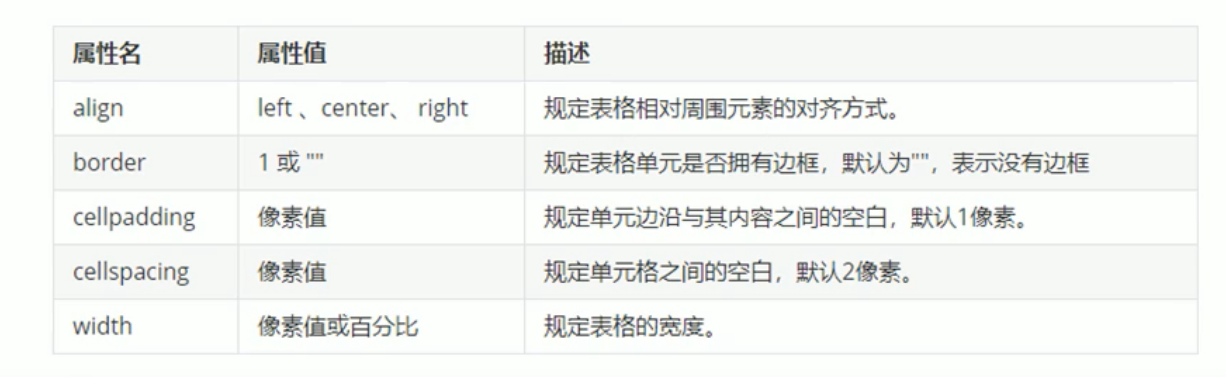 表格标签这一部分属性实际开发中不常用,后面通过css 来设置