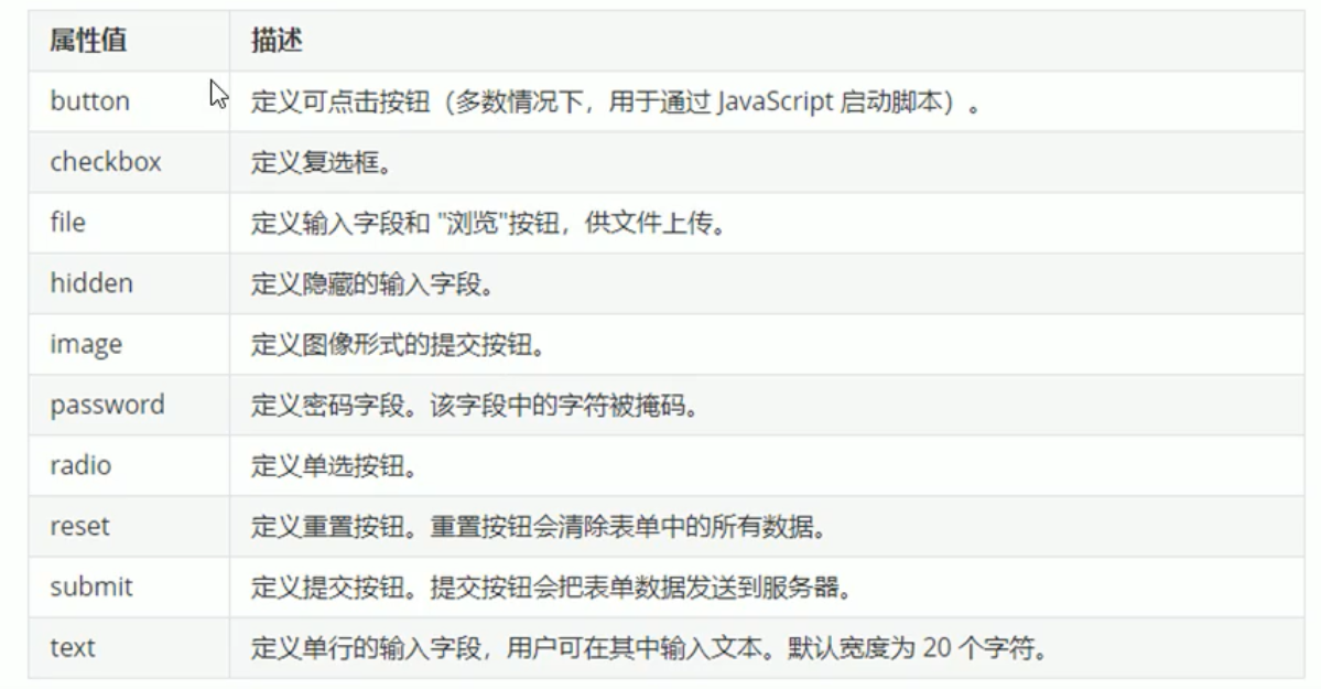 <input>标签为单标签<input>标签的属性设置不同的属性值用来指定不同的控件类型