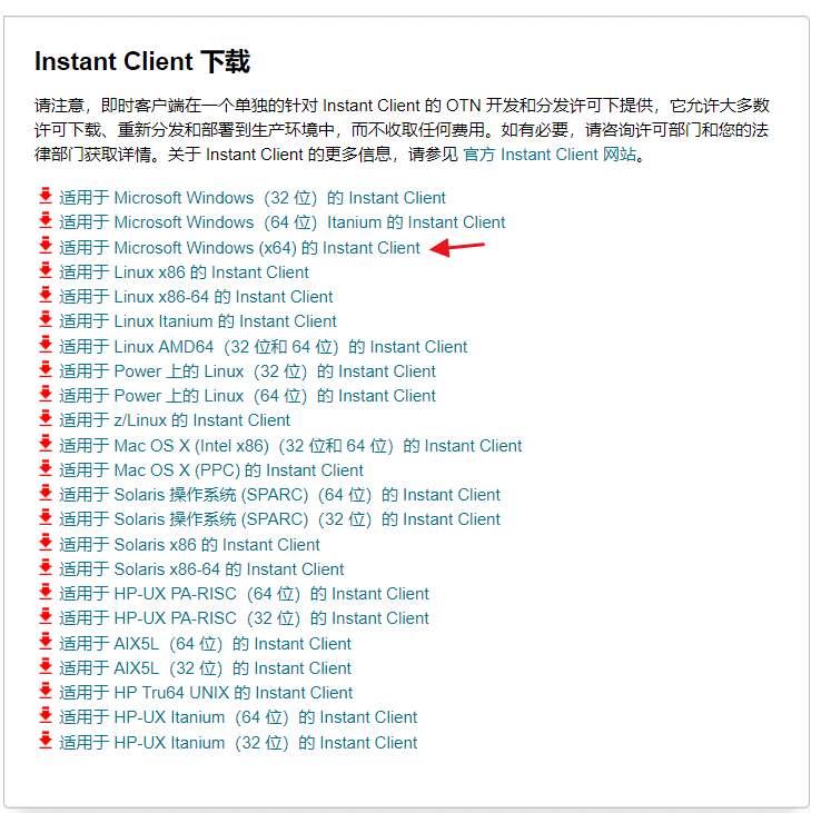 官网地址:https://www.oracle.com/technetwork/cn/database/features/instant-client/index-092699-zhs.html