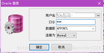 3.保存以上配置后,重新启动PLSQL,登录,数据库填写上面配置的连接名APPORCL ,要对应。