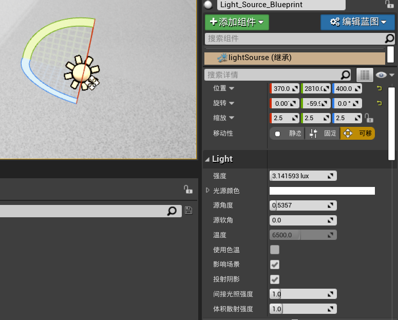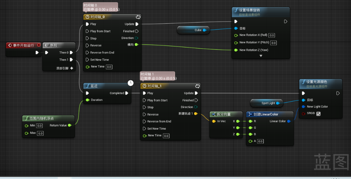 使用“Set World Rotation”改变光源的转角,使用“Set Light Color”改变光源的颜色。
