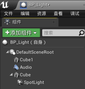 新建蓝图类Actor,在里面“Add Component”添加光源。可以用可见物体如cube来在现实场景中表征这个光源,只需要把光源附加到cube里二者就能同步运动。