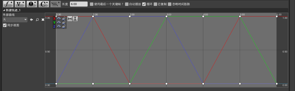 使用“时间轴”控制各时刻旋转量的值和光源颜色的值。时间轴的配置见官方文档。