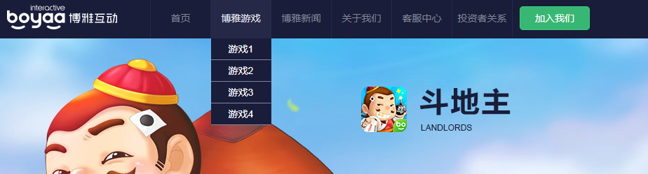 下拉菜单可以使用ul>li结构,在【博雅游戏】这个li里再插入一个ul>li结构