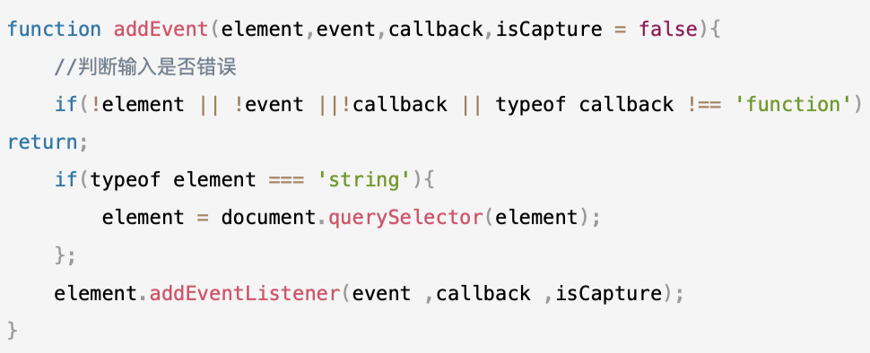 element.addEventListener(event,function,useCapture);