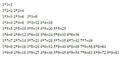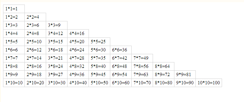 str += '<td>'+ j + '*' + i + '=' +( j*i )+'</td>';