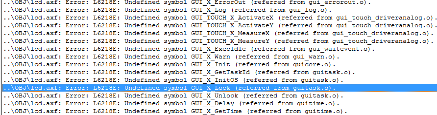 ..\OBJ\lcd.axf: Error: L6218E: Undefined symbol GUI_X_Init (referred from guicore.o).