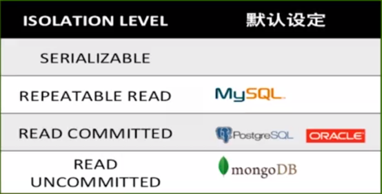 下图展示了几家不同的数据库厂商的不同事物隔离级别
