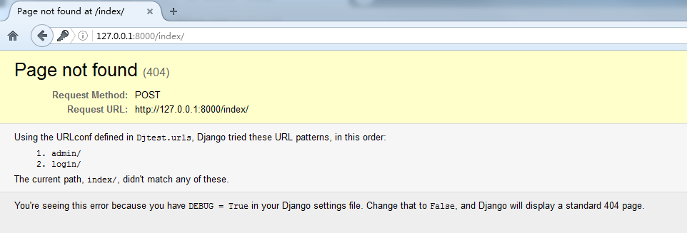 我们可以看到图片异常报错为,找不到index路径,原来是我们这边没有在代码中写入index的路径渲染内容,所以找不到,属于正常,所有呢,大家在遇到报错的时候不要着急,django都会把报错的一些信息全部返回给我们的。