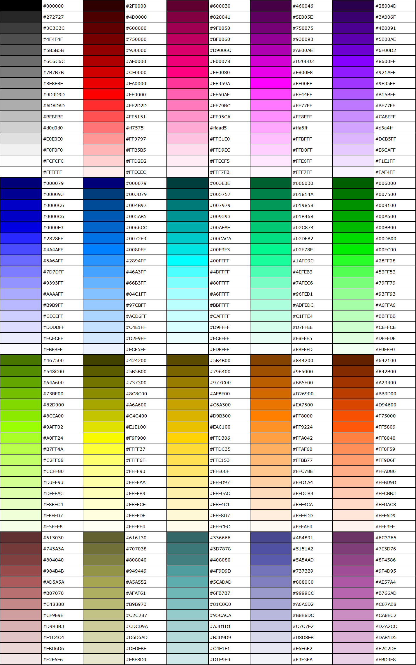 | #000000 | #2F0000 | #600030 | #460046 | #28004D |