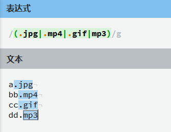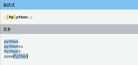 在网站中输入表达式和文本,会自动标蓝匹配的字符串!