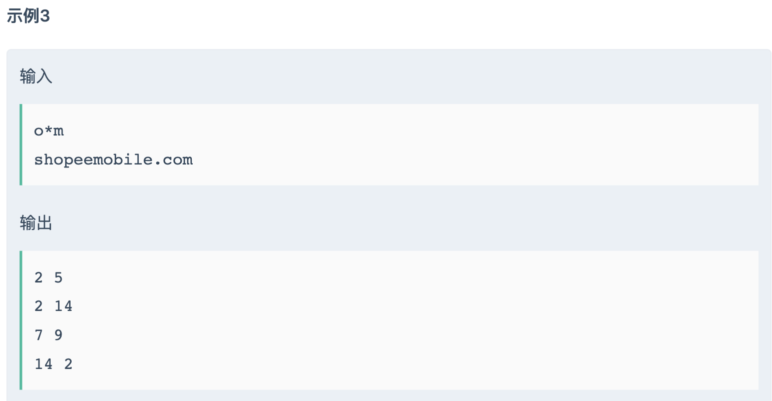 Shopee2019年笔试题:在Linux Shell命令下通配符’‘表示0个或多个字符, 现编写一段代码实现通配符’‘的功能,注意只需要实现’*’, 不用实现其他通配符。