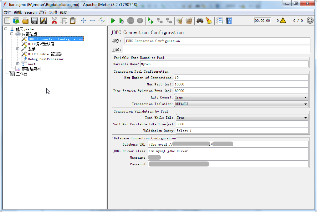 1、新建线程组并把相关jar放到/lib或/lib/ext目录、添加jdbc connection configuration等,此处省略,直接附上截图
