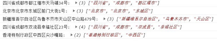 直接上代码,一看就懂, 一般国内地址返回array前三项就是省市县,若要扩展到社区、街道等可自行扩展。