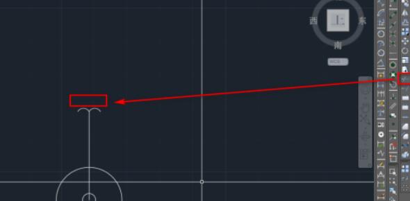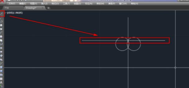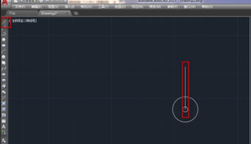 3、以同心圆的圆心为起点绘制一条竖直的线。