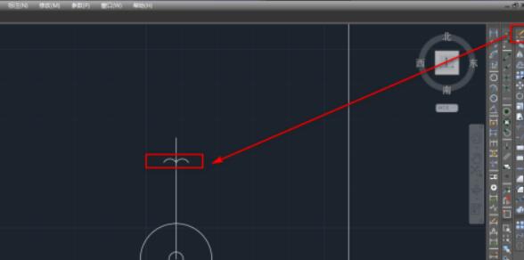 5、使用镜像工具,将小圆以竖线为镜面进行镜像。