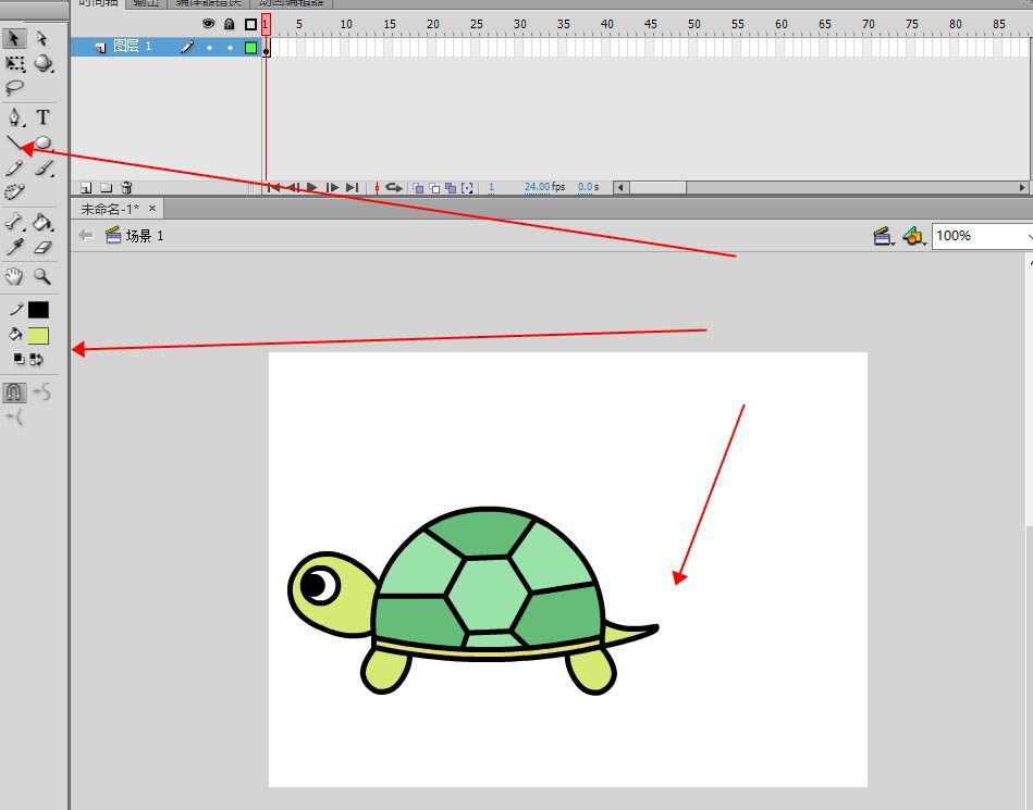 flash怎么手绘乌龟图形? flash简笔画乌龟的画法