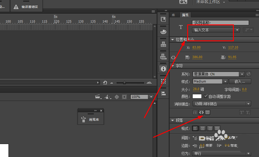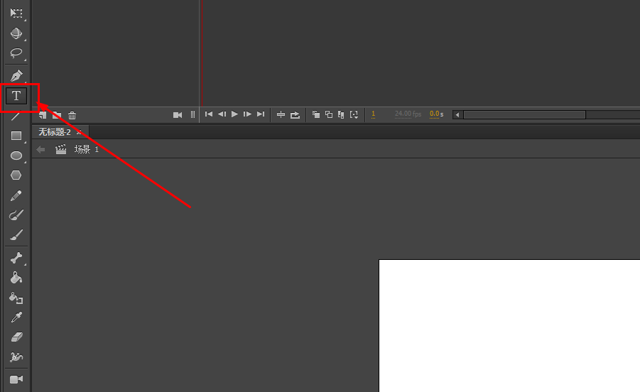 2、在工具栏中找到文本工具,并在舞台上放置一个文本框