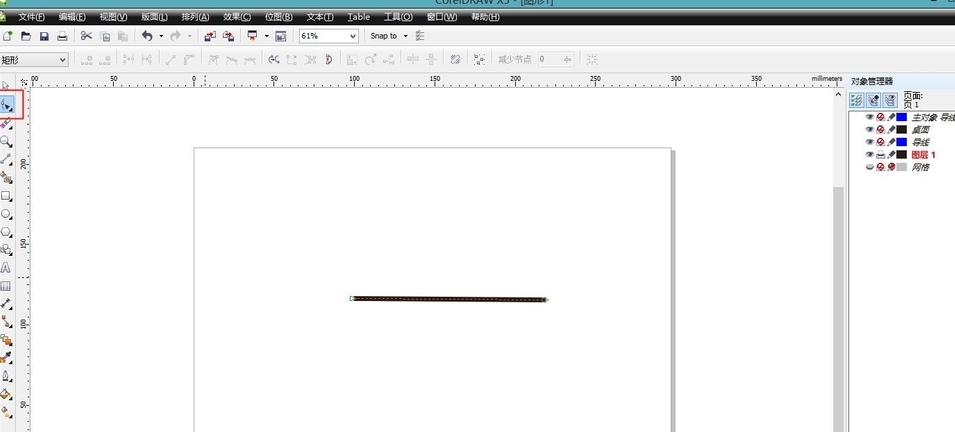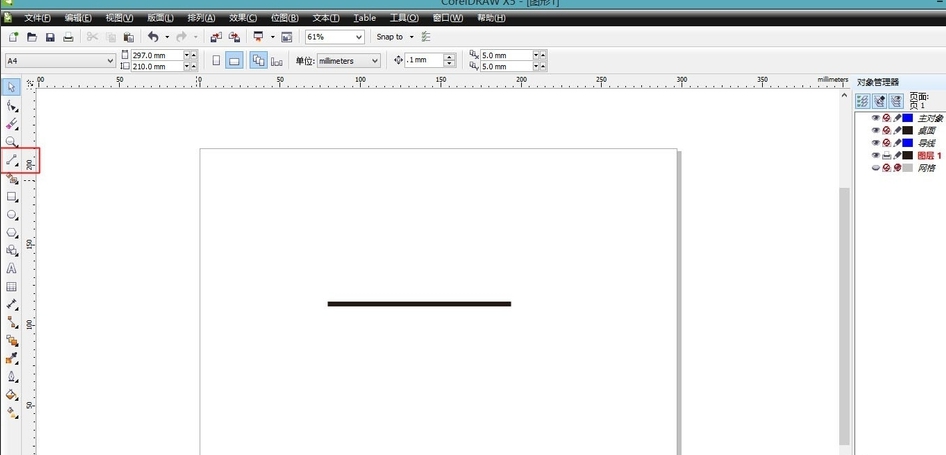 1.coreldraw,使用直线工具画出一条直线,为方便观看,我将直线宽度设置为3mm.