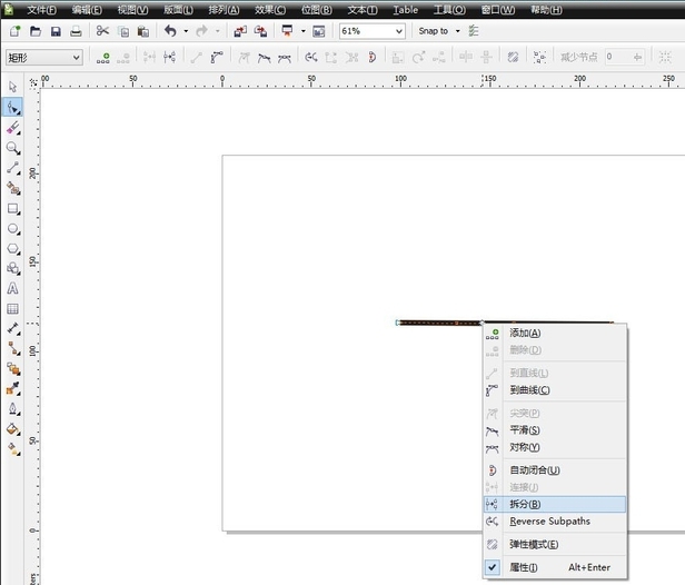 4.线条。在线条2个描点直接按鼠标右键,移动到“拆分选项”,点击。