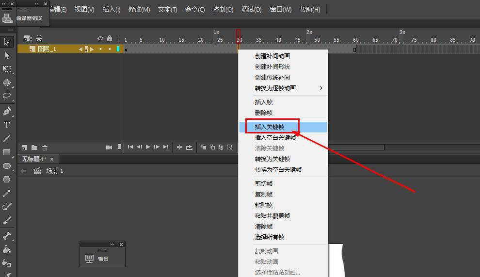 3、在第30帧插入关键帧,鼠标右键或者使用快捷键f6