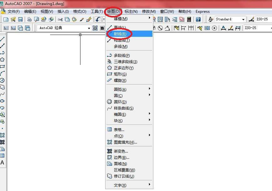 选择【绘图】→【射线】菜单命令,结果如下图所示