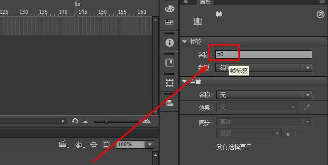 4、以第20帧关键帧为例,选择第20帧,然后在属性面板设置帧标签