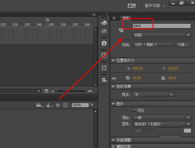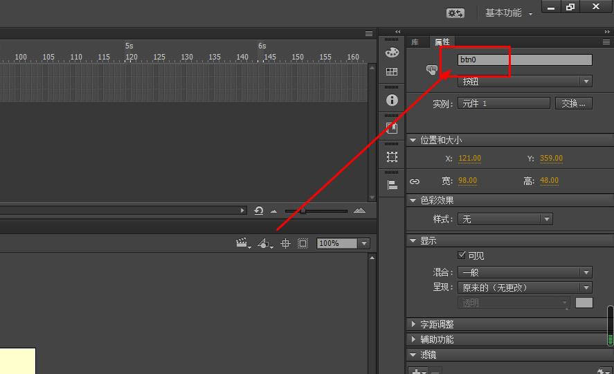 7、设置按钮的实例名分别为btn0,btn1,btn2