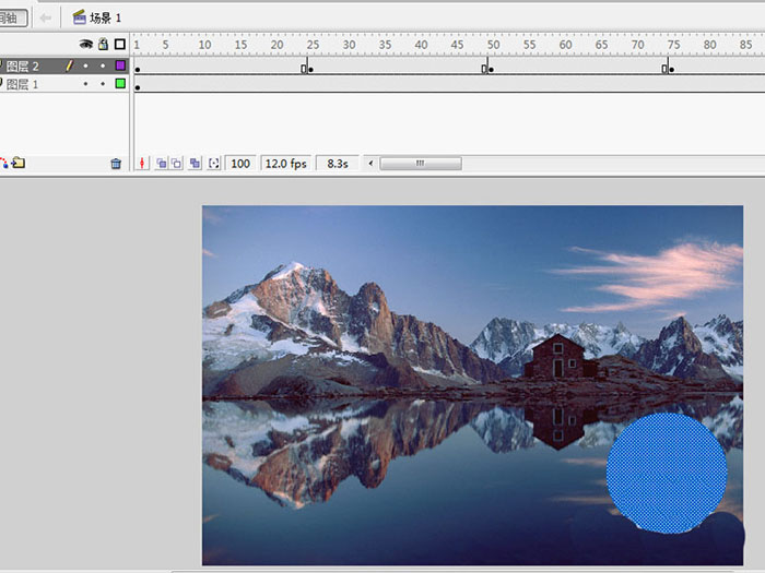 想要制作一幅山水图在圆形中慢慢显示出来的动画效果,我们需要利用flash制作遮罩动画,主要利用了补间动画和遮罩层功能,下面我们就来看看详细的教程。