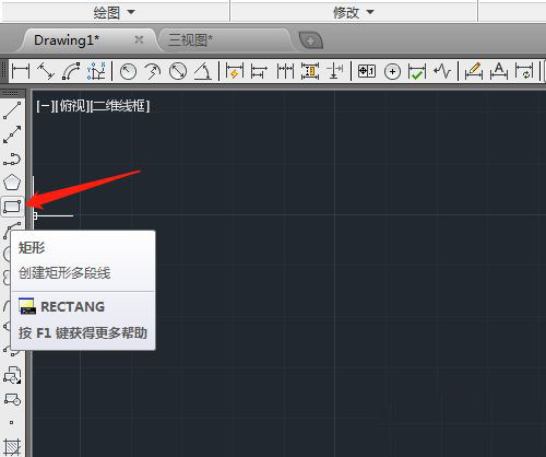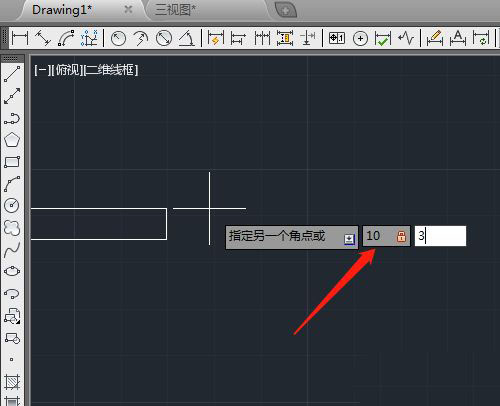 3.在适当的位置单击为矩形的第一个点,输入10,3确定,绘制出矩形。