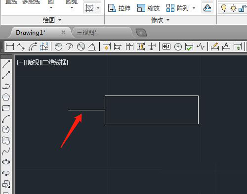 4.单击直线工具,以垂直直线的中点为直线的起点,向左绘制一条合适长度的直线。