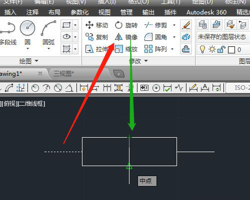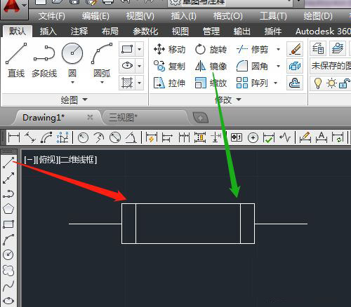 6.再用直线工具绘制一条垂直线,另一条也是用镜像操作。