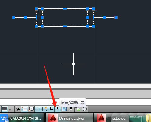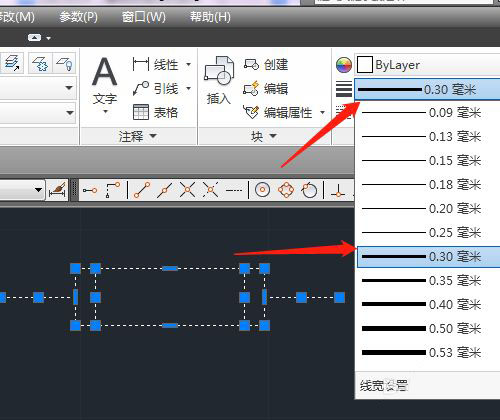7.框选所有线段,改线宽为0.30毫米,单击显示/隐藏线宽图标,显示粗线。