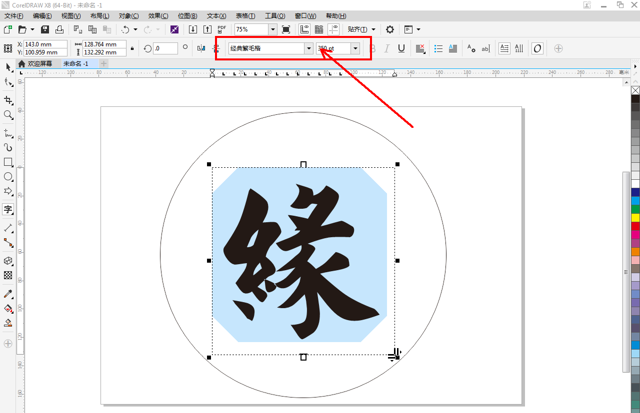 3、点击【文本工具】,按图示设置好文本的字体和文字大小后,输入要镂空的文字内容;