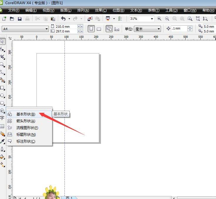 1、首先启动软件,新建一个文件,在工具栏中选择基本形状